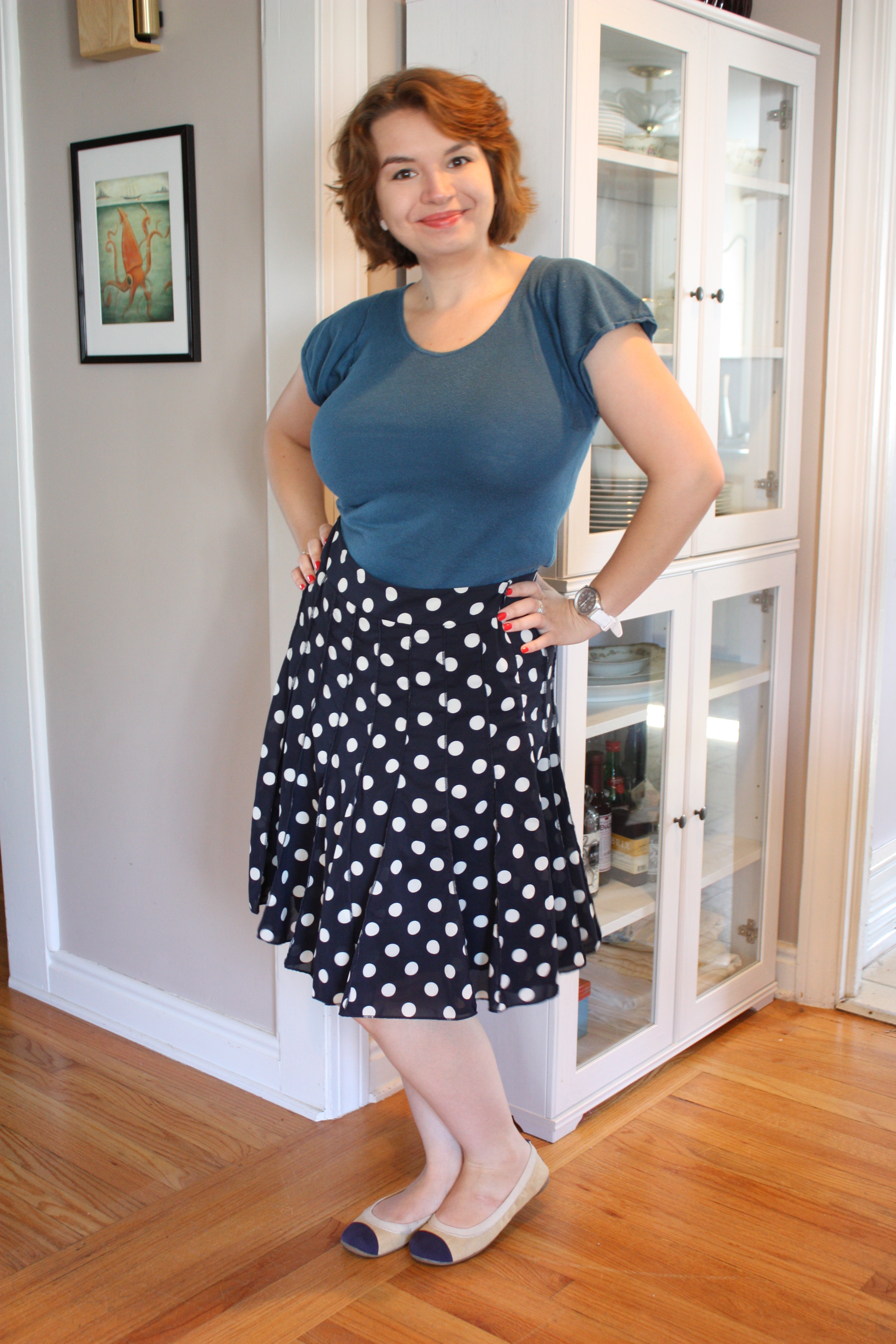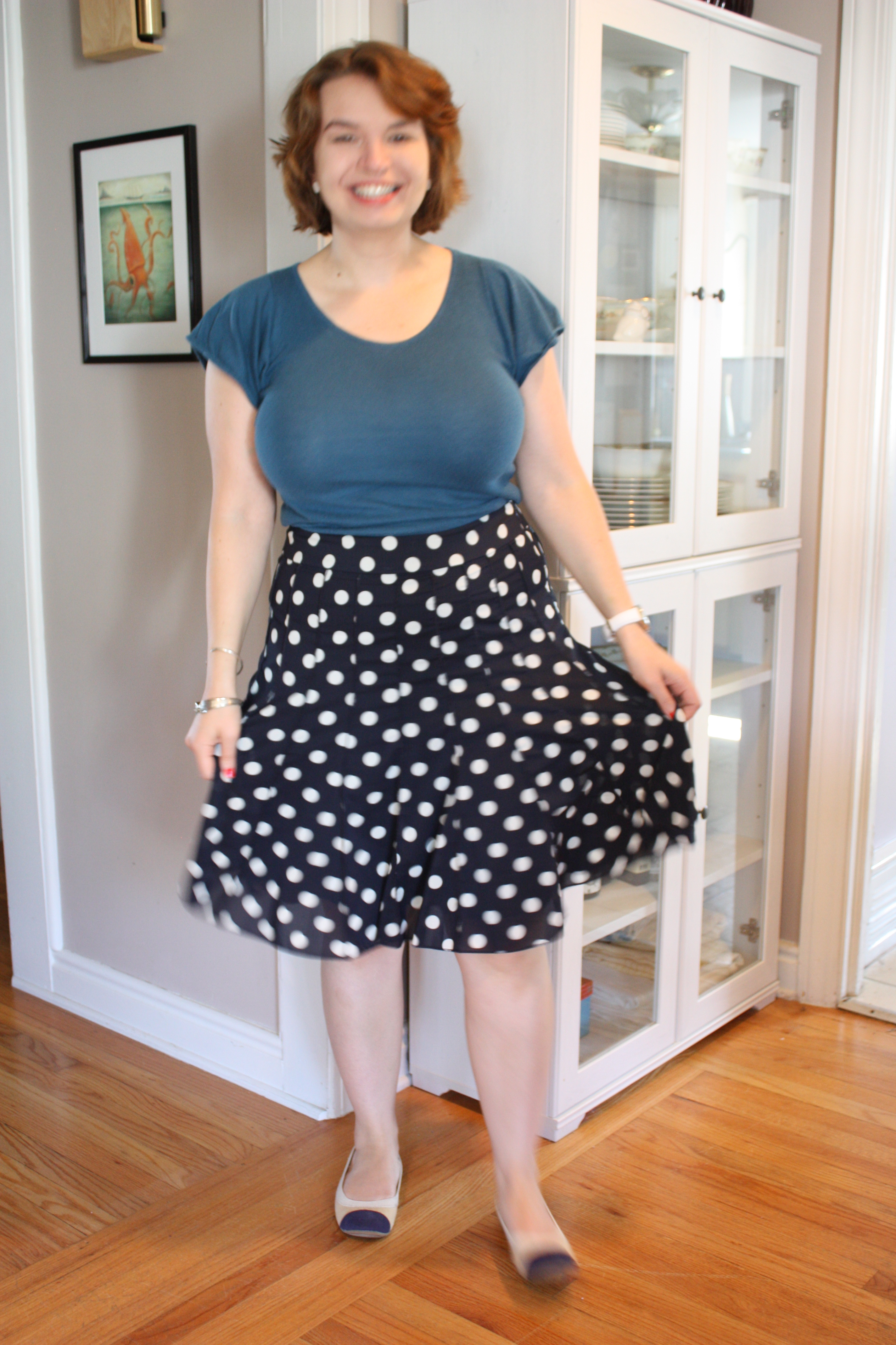 I chose this outfit because it’s easy to wear for 12+ hour work days, but it’s also fun and flirty and professional all at once. I love running around in this skirt because it’s so light and flounces in all the right ways, but never loses shape. This whole outfit just seemed so apropos today: ending one season and beginning another.
